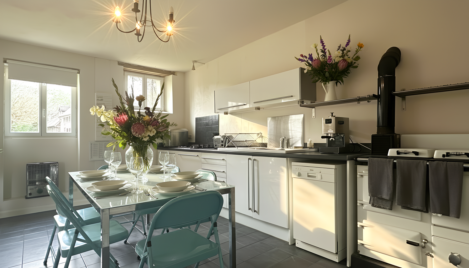 FULLY EQUIPPED MODERN KITCHEN WITH GAS HOB, ELECTRIC OVEN, MICROWAVE/OVEN, COFFEE MACHINE AND ICE MAKER. LOUNGE AREA WITH HD SMART TV, DVD PLAYER, TWO SOFAS (ONE A SOFA BED), LOG BURNER AND EVEN A DART BOARD!