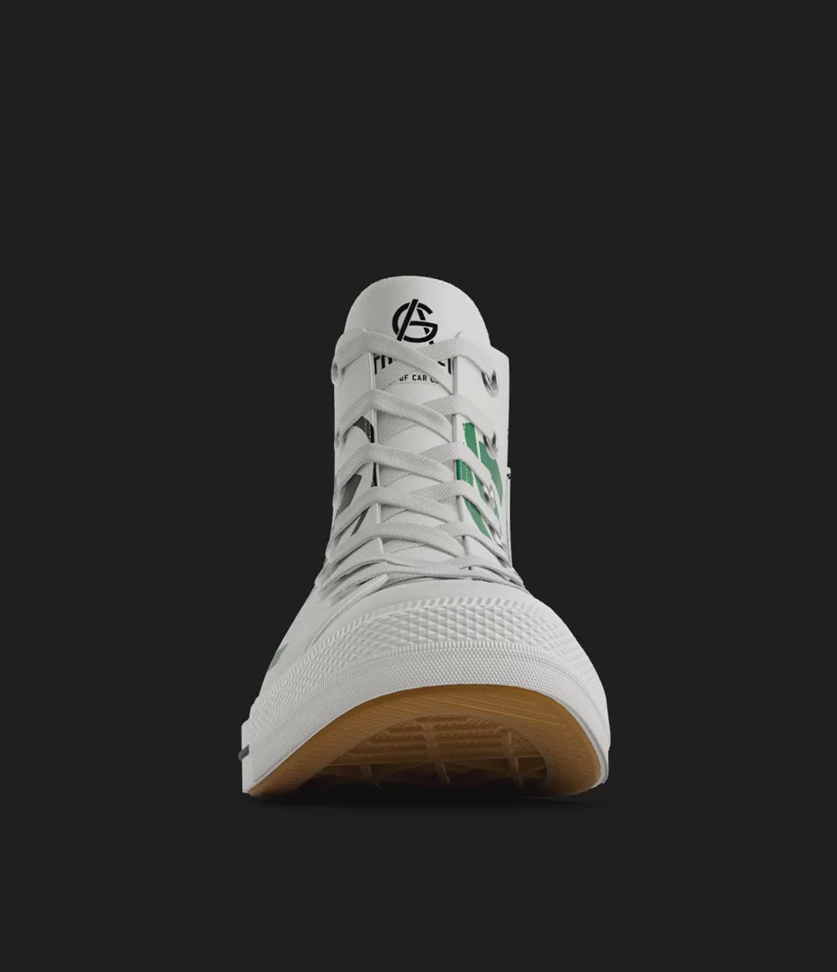 Sandro Munari’s 1977 Monte Carlo Rallye-winning Lancia Stratos HF is the inspiration for these hi-top, race-ready sneakers. The trademark Autografica distilled style is applied throughout and livery, sponsors and driver are all celebrated on-board.
